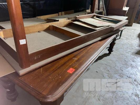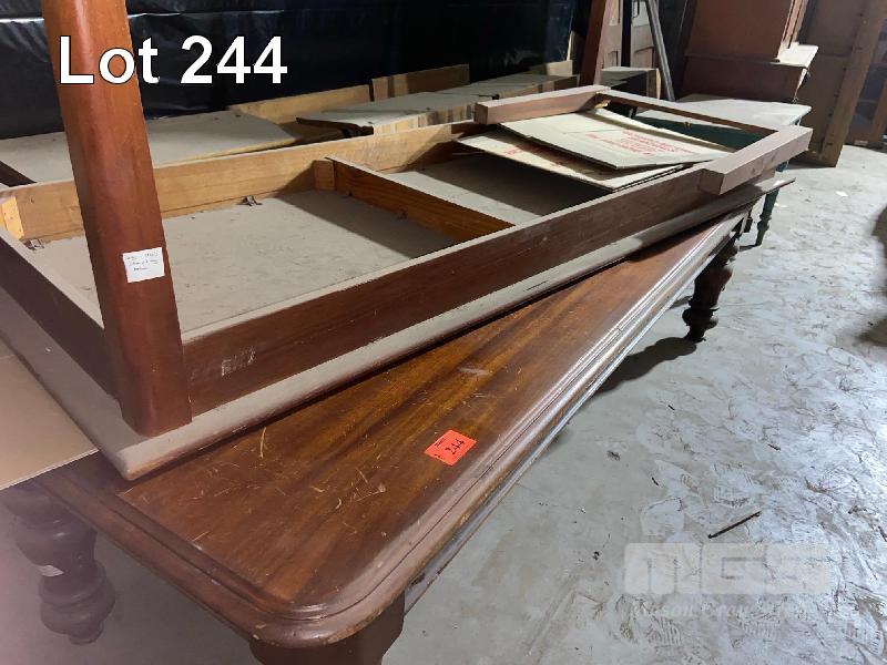 2 x LONG WOODEN MEETING TABLES, 1 HAS DAMAGED LEG 2400 x 900mm