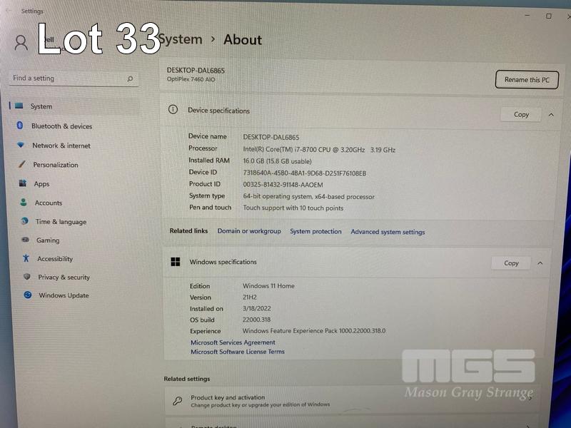 ALL-IN-ONE PC, DELL OPTIPLEX 7460, CORE i7 8700 (8TH GEN) @ 3.2GHz, 16GB DDR4 RAM, 512GB NVMe M.2 SSD, INBUILT 23.8" FHD TOUCHSCREEN (1920x1080), INTEL HD VIDEO, WEBCAM, 5 x USB, 1 x USB-C, WINDOWS 11 HOME INSTALLED, KEYBOARD & MOUSE S/N:FC2FHY2