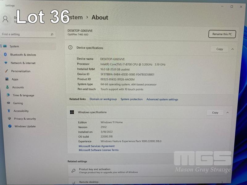 ALL-IN-ONE PC, DELL OPTIPLEX 7460, CORE i7 8700 (8TH GEN) @ 3.2GHz, 16GB DDR4 RAM, 512GB NVMe M.2 SSD, INBUILT 23.8" FHD TOUCHSCREEN (1920x1080), INTEL HD VIDEO, WEBCAM, 5 x USB, 1 x USB-C, WINDOWS 11 HOME INSTALLED, KEYBOARD & MOUSE S/N:FC39HY2