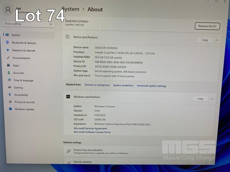 ALL-IN-ONE PC, DELL OPTIPLEX 7460, CORE i7 8700 (8TH GEN) @ 3.2GHz, 16GB DDR4 RAM, 512GB NVMe M.2 SSD, INBUILT 23.8" FHD TOUCHSCREEN (1920x1080), INTEL HD VIDEO, WEBCAM, 5 x USB, 1 x USB-C, WINDOWS 11 HOME INSTALLED, KEYBOARD & MOUSE S/N:FCN7HY2