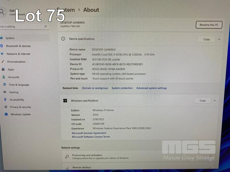 ALL-IN-ONE PC, DELL OPTIPLEX 7460, CORE i7 8700 (8TH GEN) @ 3.2GHz, 16GB DDR4 RAM, 512GB NVMe M.2 SSD, INBUILT 23.8" FHD TOUCHSCREEN (1920x1080), INTEL HD VIDEO, WEBCAM, 5 x USB, 1 x USB-C, WINDOWS 11 HOME INSTALLED, KEYBOARD & MOUSE S/N:FCC9HY2
