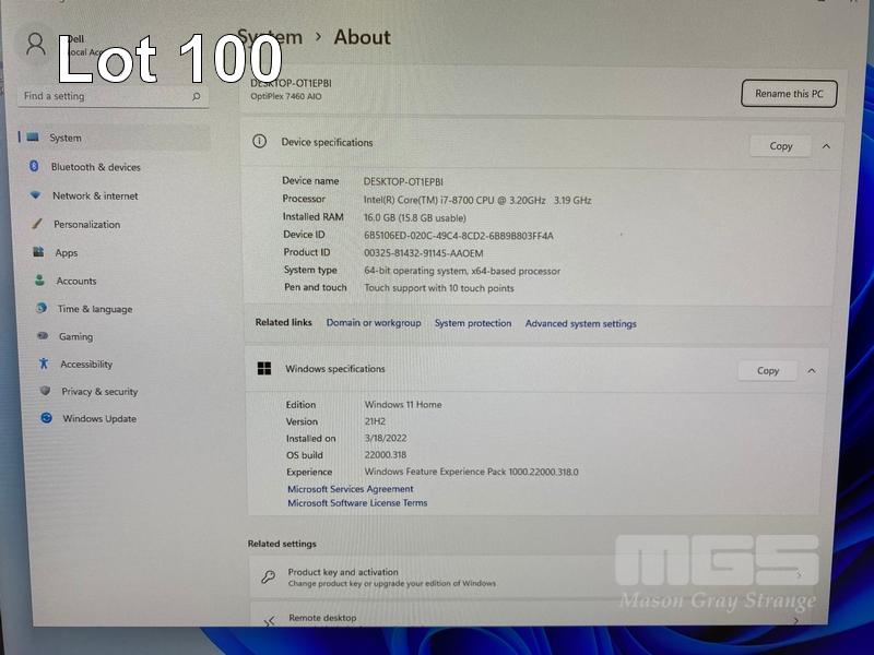 ALL-IN-ONE PC, DELL OPTIPLEX 7460, CORE i7 8700 (8TH GEN) @ 3.2GHz, 16GB DDR4 RAM, 512GB NVMe M.2 SSD, INBUILT 23.8" FHD TOUCHSCREEN (1920x1080), INTEL HD VIDEO, WEBCAM, 5 x USB, 1 x USB-C, WINDOWS 11 HOME INSTALLED, KEYBOARD & MOUSE S/N:FCC8HY2