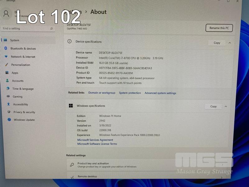 ALL-IN-ONE PC, DELL OPTIPLEX 7460, CORE i7 8700 (8TH GEN) @ 3.2GHz, 16GB DDR4 RAM, 512GB NVMe M.2 SSD, INBUILT 23.8" FHD TOUCHSCREEN (1920x1080), INTEL HD VIDEO, WEBCAM, 5 x USB, 1 x USB-C, WINDOWS 11 HOME INSTALLED, KEYBOARD & MOUSE S/N:FCQ6HY2