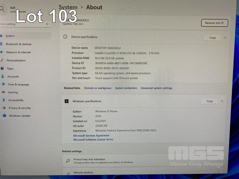 ALL-IN-ONE PC, DELL OPTIPLEX 7460, CORE i7 8700 (8TH GEN) @ 3.2GHz, 16GB DDR4 RAM, 512GB NVMe M.2 SSD, INBUILT 23.8" FHD TOUCHSCREEN (1920x1080), INTEL HD VIDEO, WEBCAM, 5 x USB, 1 x USB-C, WINDOWS 11 HOME INSTALLED, KEYBOARD & MOUSE S/N:FC98HY2