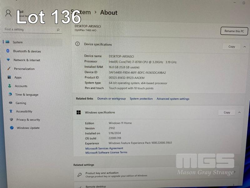 ALL-IN-ONE PC, DELL OPTIPLEX 7460, CORE i7 8700 (8TH GEN) @ 3.2GHz, 16GB DDR4 RAM, 512GB NVMe M.2 SSD, INBUILT 23.8" FHD TOUCHSCREEN (1920x1080), INTEL HD VIDEO, WEBCAM, 5 x USB, 1 x USB-C, WINDOWS 11 HOME INSTALLED, KEYBOARD & MOUSE S/N:FC38HY2