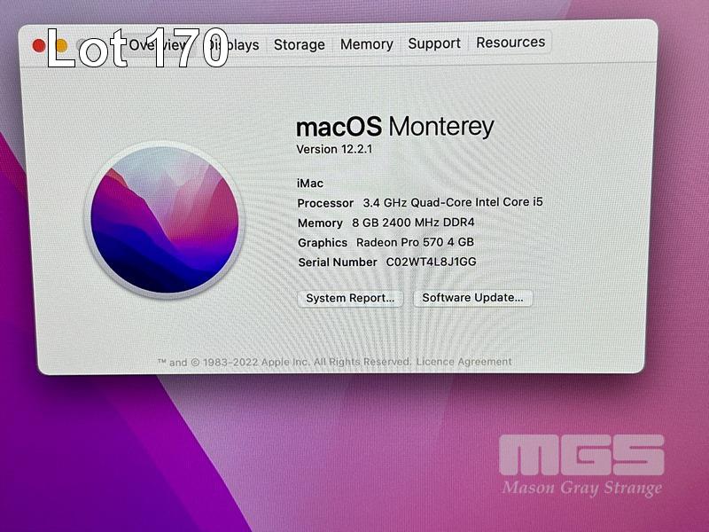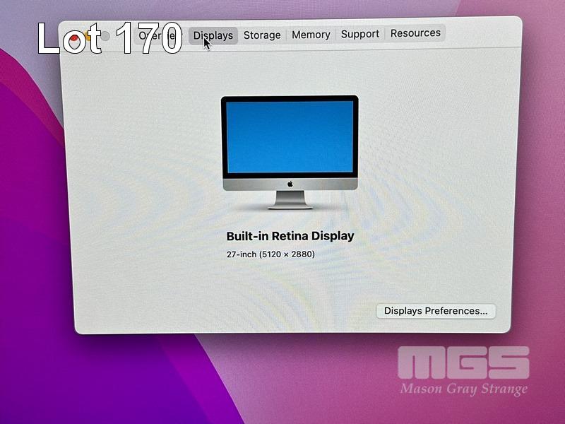APPLE iMAC (A1419), CORE i5 7500 (7TH GEN) @ 3.4GHz, 8GB DDR4 RAM, 1TB FUSION HDD, BUILT-IN 27" RETINA DISPLAY (5120x2880), 4GB RADEON PRO 570 VIDEO, Wi-Fi, MAC OS 12 INSTALLED (NO KEYBOARD, NO MOUSE) S/N:C02WT4L8J1GG