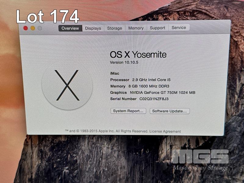 APPLE iMAC (A1418), CORE i5 4570S (4TH GEN) @ 2.9GHz, 8GB DDR3 RAM, 1TB SSD, BUILT-IN 21.5" DISPLAY (1920x1080), 1GB NVIDIA GEFORCE GT 750M VIDEO, Wi-Fi, BLUETOOTH, MAC OS 10.10 INSTALLED (NO KEYBOARD, NO MOUSE) S/N:C02Q31NZF8J3