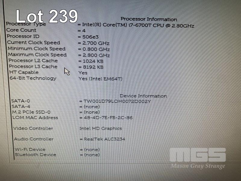 DESKTOP PC, DELL OPTIPLEX 7040 MICRO, CORE i7 6700T (6TH GEN) @ 2.8GHz, 16GB DDR4 RAM, 512GB SSD, INTEL HD VIDEO, 6 x USB, WINDOWS 10 HOME INSTALLED (NO POWER SUPPLY, NO KEYBOARD, NO MOUSE) S/N:1F592K2