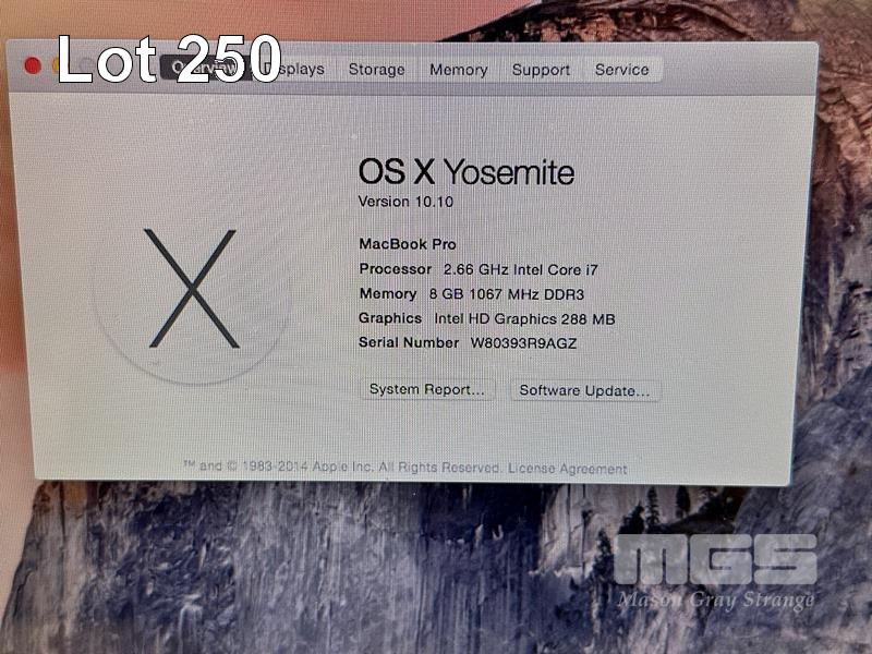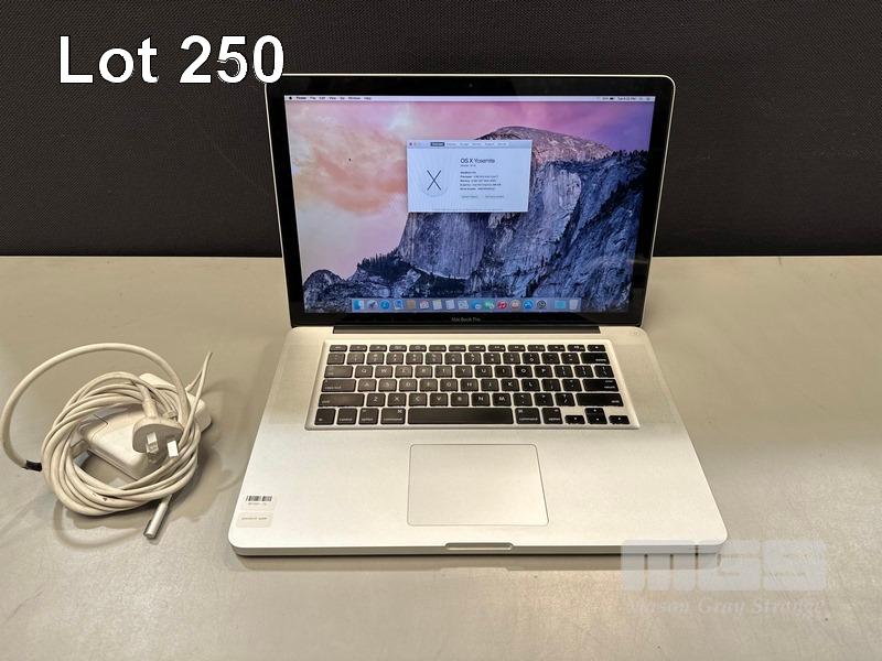 LAPTOP, APPLE MACBOOK PRO (A1286), CORE i7 620M @ 2.66GHz, 8GB DDR3 RAM, 500GB SATA HDD, DVD-RW, 15.4" WIDESCREEN (1680x1050), INTEL HD GRAPHICS, Wi-Fi, BLUETOOTH, MAC OS 10.10 INSTALLED & POWER SUPPLY (NOTE: MINOR MARKS ON SCREEN) S/N:W80393R9AGZ