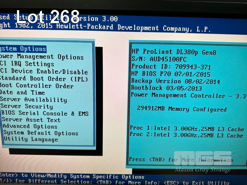 RACKMOUNT SERVER, HP PROLIANT DL380p Gen8, 2U, 2 x XEON E5-2690 v2 @ 3GHz, 288GB ECC DDR3 RAM (18x16GB), 2 x 300GB SAS HDD, DVD-RW, 10Gb 2-PORT 533FLR-T ADAPTER, HP SAS H221 ADAPTER, HP SC44Ge ADAPTER, 2 x 1Gb 4-PORT 331T ADAPTERS, 2 x PSU (NO CABLES) S/N:AUD45100FC