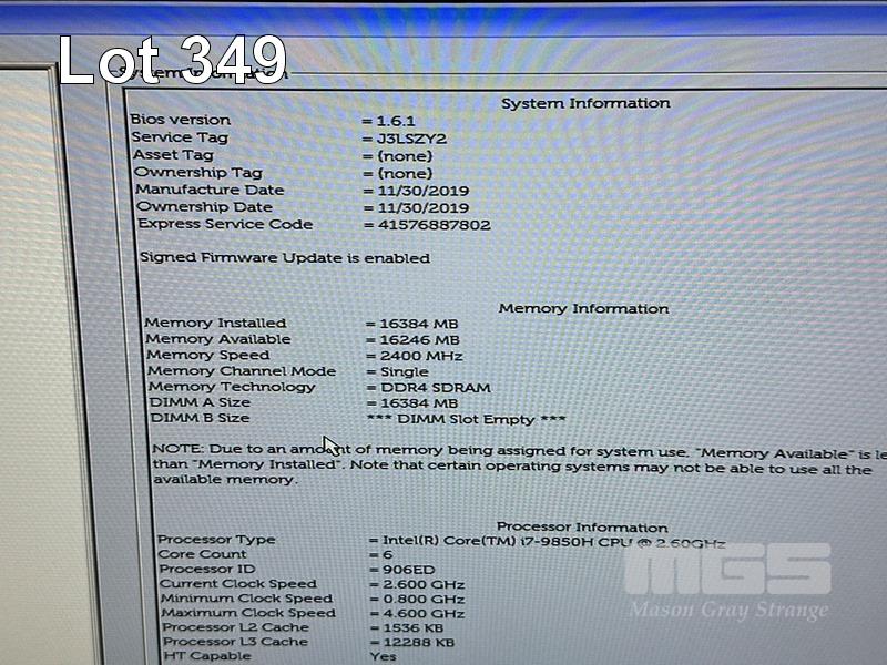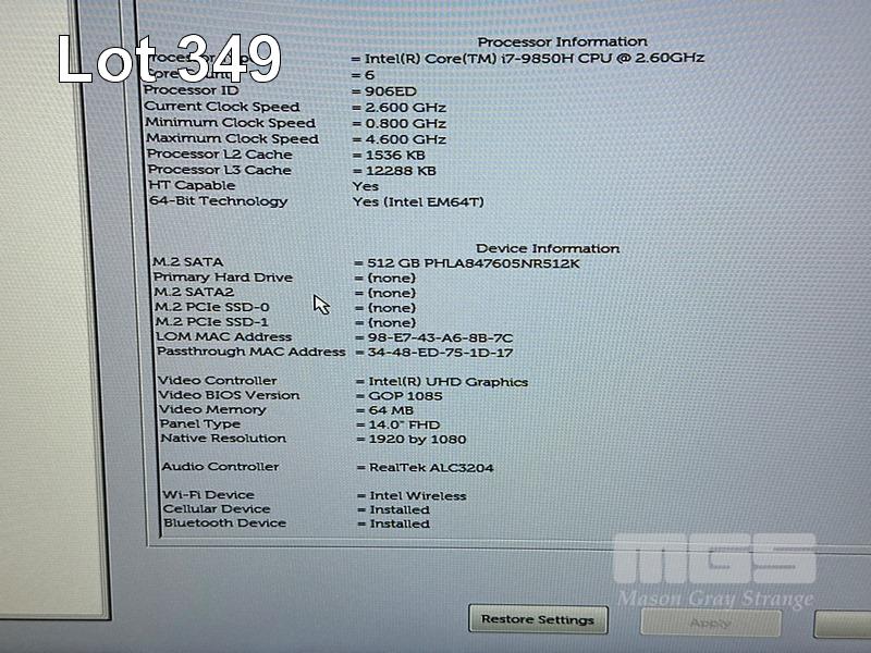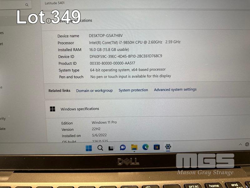LAPTOP, DELL LATITUDE 5401, CORE i7 9850H (9TH GEN) @ 2.6GHz, 16GB DDR4 RAM, 512GB M.2 SSD, 14" WIDESCREEN (1920x1080), 2GB NVIDIA GEFORCE MX150 VIDEO, INTEL UHD GRAPHICS 630, Wi-Fi, CELLULAR, BLUETOOTH, WINDOWS 11 PRO INSTALLED (NO POWER SUPPLY) (NOTE: BRIGHT SPOT ON SCREEN) S/N:J3LSZY2