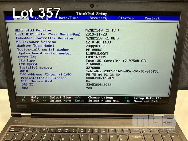 LAPTOP, LENOVO THINKPAD P53 MOBILE WORKSTATION, TYPE 20QQ, CORE i7 9750H (9TH GEN) @ 2.6GHz, 32GB DDR4 RAM, 512GB NVMe M.2 SSD, 15.6" WIDESCREEN (1920x1080), 4GB NVIDIA QUADRO T2000 VIDEO, Wi-Fi, BLUETOOTH, WINDOWS 11 PRO INSTALLED & POWER SUPPLY (NOTE: MARKS ON SCREEN0 S/N:PF1VV8WS