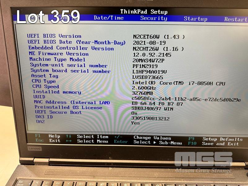 LAPTOP, LENOVO THINKPAD P52 MOBILE WORKSTATION, TYPE 20MA, CORE i7 8850H (8TH GEN) @ 2.6GHz, 32GB DDR4 RAM, 512GB NVMe M.2 SSD, 15.6" WIDESCREEN (1920x1080), 4GB NVIDIA QUADRO P2000 VIDEO, Wi-Fi, BLUETOOTH, WINDOWS 11 PRO INSTALLED & POWER SUPPLY (NOTE: MINOR MARKS ON SCREEN) S/N:PF1NZ919