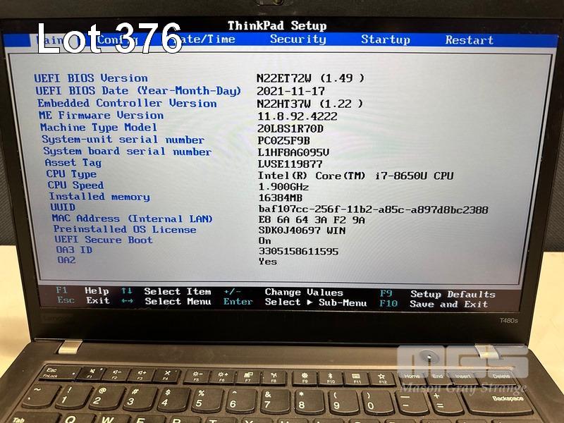 LAPTOP, LENOVO THINKPAD T480s, TYPE 20L8, CORE i7 8650U (8TH GEN) @ 1.9GHz, 16GB DDR4 RAM, 512GB NVMe M.2 SSD, 14" TOUCHSCREEN (1920x1080), INTEL HD VIDEO, Wi-Fi, BLUETOOTH, WINDOWS 11 PRO INSTALLED (NO USB-C POWER SUPPLY) (NOTE: MINOR MARKS ON SCREEN) S/N:PC0Z5F9B