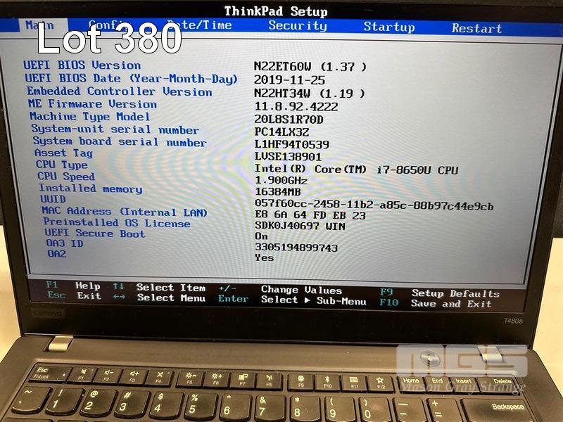 LAPTOP, LENOVO THINKPAD T480s, TYPE 20L8, CORE i7 8650U (8TH GEN) @ 1.9GHz, 16GB DDR4 RAM, 512GB NVMe M.2 SSD, 14" TOUCHSCREEN (1920x1080), INTEL HD VIDEO, Wi-Fi, BLUETOOTH, WINDOWS 11 PRO INSTALLED (NO USB-C POWER SUPPLY) (NOTE: MARKS ON SCREEN) S/N:PC14LX3Z