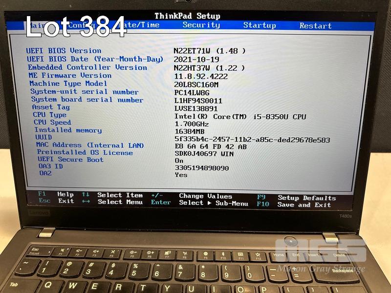 LAPTOP, LENOVO THINKPAD T480s, TYPE 20L8, CORE i5 8350U (8TH GEN) @ 1.7GHz, 16GB DDR4 RAM, 256GB NVMe M.2 SSD, 14" TOUCHSCREEN (1920x1080), INTEL HD VIDEO, Wi-Fi, BLUETOOTH, WINDOWS 11 PRO INSTALLED (NO USB-C POWER SUPPLY) (NOTE: MINOR MARKS ON SCREEN) S/N:PC14LW8G