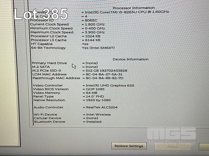 LAPTOP, DELL LATITUDE 5400, CORE i5 8265U (8TH GEN) @ 1.6GHz, 8GB DDR4 RAM, 512GB NVMe M.2 SSD, 14" WIDESCREEN (1920x1080), INTEL UHD GRAPHICS 620, Wi-Fi, BLUETOOTH, WINDOWS 11 HOME INSTALLED & POWER SUPPLY S/N:JD356Y2
