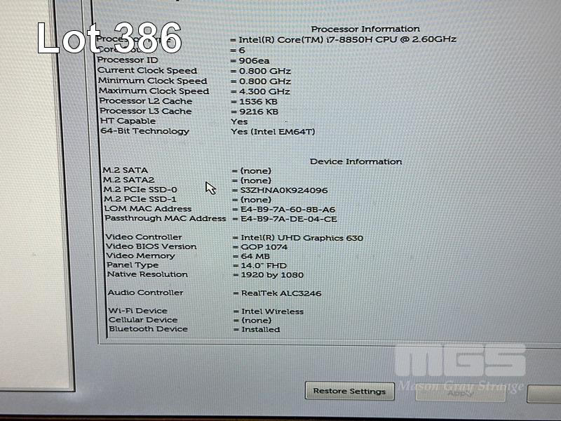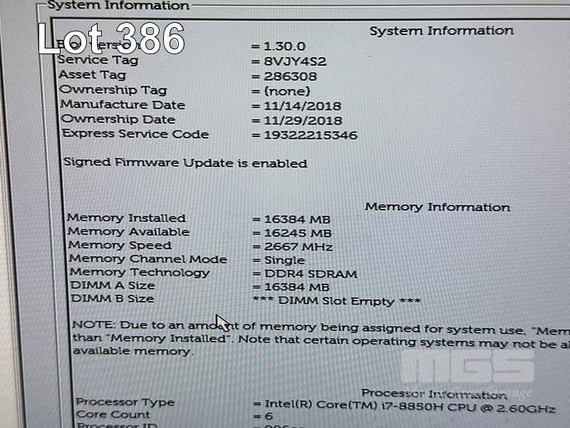 LAPTOP, DELL LATITUDE 5491, CORE i7 8850H (8TH GEN) @ 2.6GHz, 16GB DDR4 RAM, 512GB NVMe M.2 SSD, 14" WIDESCREEN (1920x1080), 2GB NVIDIA GEFORCE MX130 VIDEO, INTEL UHD GRAPHICS 630, Wi-Fi, BLUETOOTH, WINDOWS 11 PRO INSTALLED & POWER SUPPLY (NOTE: MARKS & BRIGHT SPOT ON SCREEN) S/N:8VJY4S2