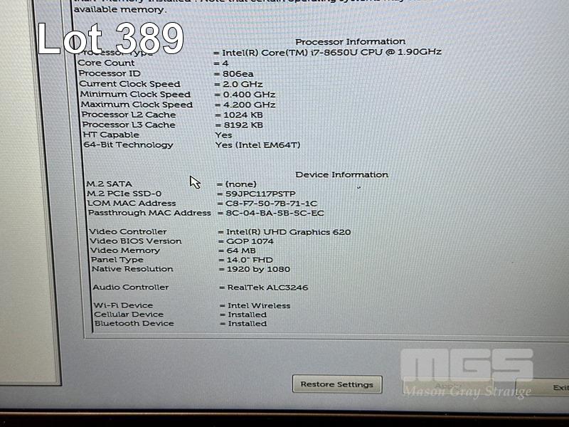 LAPTOP, DELL LATITUDE 5490, CORE i7 8650U (8TH GEN) @ 1.9GHz, 8GB DDR4 RAM, 256GB NVMe M.2 SSD, 14" WIDESCREEN (1920x1080), 2GB NVIDIA GEFORCE MX130 VIDEO, INTEL UHD GRAPHICS 620, Wi-Fi, CELLULAR, BLUETOOTH, WINDOWS 11 PRO INSTALLED (NO POWER SUPPLY) S/N:3T2KRV2