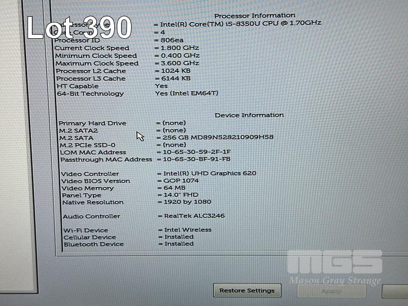 LAPTOP, DELL LATITUDE 5490, CORE i5 8350U (8TH GEN) @ 1.7GHz, 16GB DDR4 RAM, 256GB M.2 SSD, 14" WIDESCREEN (1920x1080), INTEL UHD GRAPHICS 620, Wi-Fi, CELLULAR, BLUETOOTH, WINDOWS 11 PRO INSTALLED (NO POWER SUPPLY) S/N:32TV5S2