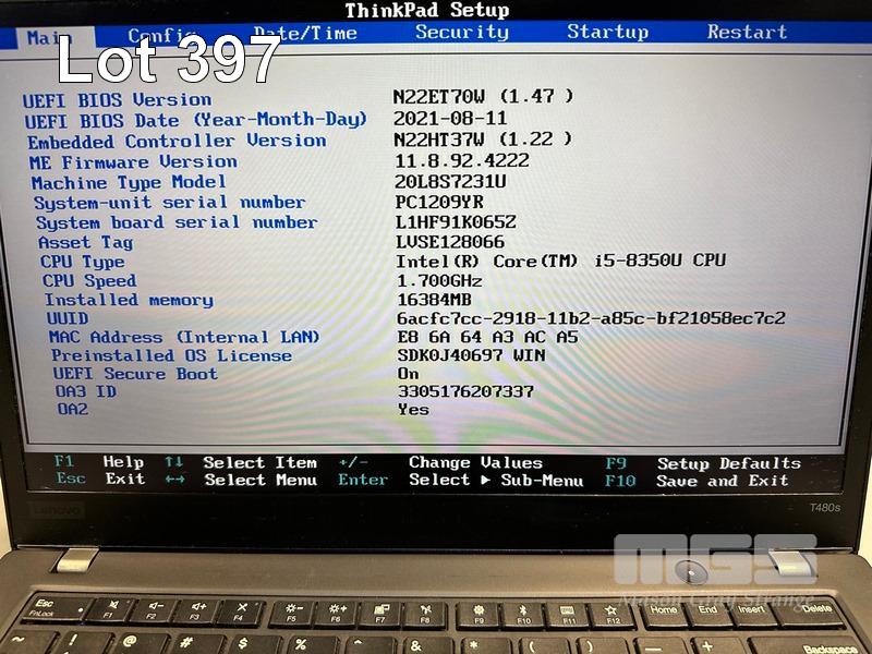LAPTOP, LENOVO THINKPAD T480s, TYPE 20L8, CORE i5 8350U (8TH GEN) @ 1.7GHz, 16GB DDR4 RAM, 256GB NVMe M.2 SSD, 14" TOUCHSCREEN (1920x1080), INTEL HD VIDEO, Wi-Fi, BLUETOOTH, WINDOWS 11 PRO INSTALLED (NO USB-C POWER SUPPLY) (NOTE: MINOR MARKS ON SCREEN) S/N:PC1209YR