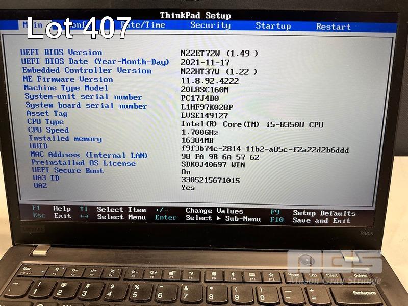 LAPTOP, LENOVO THINKPAD T480s, TYPE 20L8, CORE i5 8350U (8TH GEN) @ 1.7GHz, 16GB DDR4 RAM, 256GB NVMe M.2 SSD, 14" TOUCHSCREEN (1920x1080), INTEL HD VIDEO, Wi-Fi, BLUETOOTH, WINDOWS 11 PRO INSTALLED (NO USB-C POWER SUPPLY) (NOTE: POOR CONDITION, MISSING "THINKPAD" LOGO, MARKS ON SCREEN) S/N:PC17J4B0