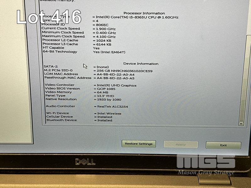 LAPTOP, DELL LATITUDE 5300, CORE i5 8365U (8TH GEN) @ 1.6GHz, 8GB DDR4 RAM, 256GB NVMe M.2 SSD, 13.3" WIDESCREEN (1920x1080), INTEL UHD GRAPHICS 620, Wi-Fi, CELLULAR, BLUETOOTH, WINDOWS 11 PRO INSTALLED (NO POWER SUPPLY) (NOTE: MARKS & SPOT ON SCREEN) S/N:5KY2KW2