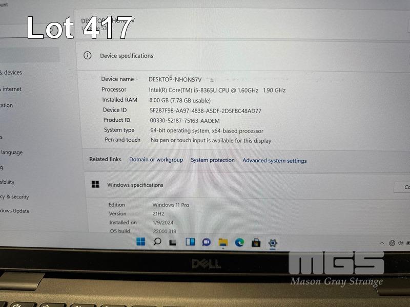 LAPTOP, DELL LATITUDE 5300, CORE i5 8365U (8TH GEN) @ 1.6GHz, 8GB DDR4 RAM, 256GB NVMe M.2 SSD, 13.3" WIDESCREEN (1920x1080), INTEL UHD GRAPHICS 620, Wi-Fi, CELLULAR, BLUETOOTH, WINDOWS 11 PRO INSTALLED (NO POWER SUPPLY) (NOTE: MARKS ON SCREEN) S/N:1N9HMT2