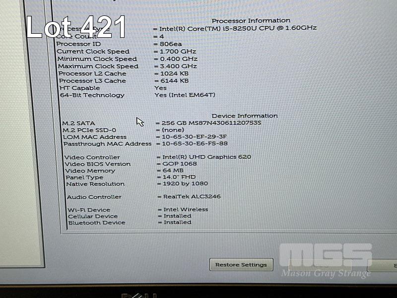 LAPTOP, DELL LATITUDE 7490, CORE i5 8250U (8TH GEN) @ 1.6GHz, 8GB DDR4 RAM, 256GB M.2 SSD, 14" WIDESCREEN (1920x1080), INTEL UHD GRAPHICS 620, Wi-Fi, CELLULAR, BLUETOOTH, WINDOWS 11 PRO INSTALLED (NO POWER SUPPLY) S/N:6HL6RQ2