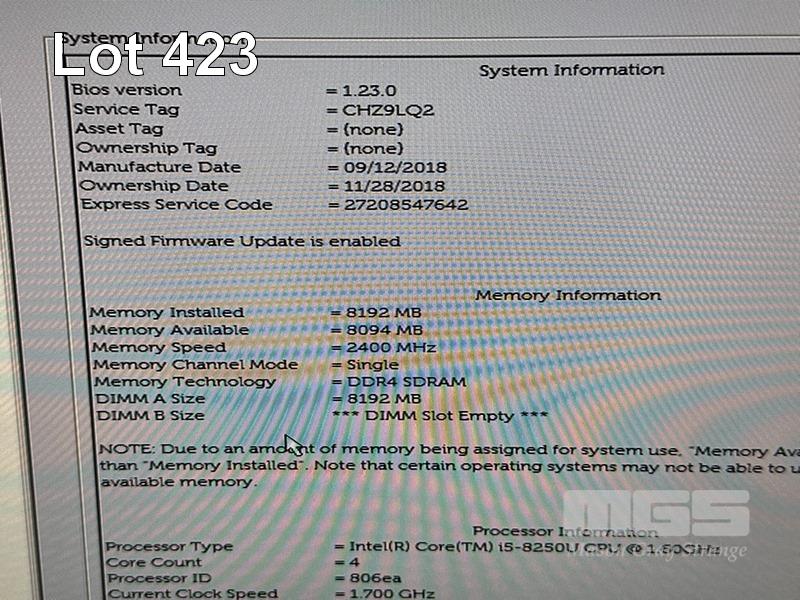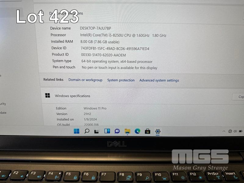 LAPTOP, DELL LATITUDE 7490, CORE i5 8250U (8TH GEN) @ 1.6GHz, 8GB DDR4 RAM, 256GB M.2 SSD, 14" WIDESCREEN (1920x1080), INTEL UHD GRAPHICS 620, Wi-Fi, CELLULAR, BLUETOOTH, WINDOWS 11 PRO INSTALLED (NO POWER SUPPLY) (NOTE: MINOR MARKS ON SCREEN) S/N:CHZ9LQ2