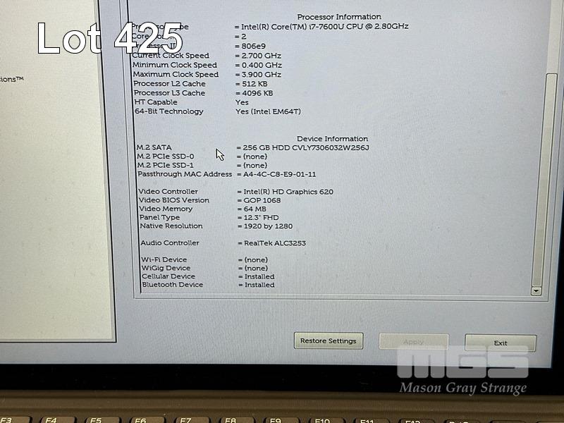 TABLET PC, DELL LATITUDE 5285, CORE i7 7600U (7TH GEN) @ 2.8GHz, 16GB DDR3 RAM, 256GB M.2 SSD, 12.3" TOUCHSCREEN (1920x1080), INTEL HD GRAPHICS 620, Wi-Fi, CELLULAR, BLUETOOTH, WINDOWS 10 PRO INSTALLED & KEYBOARD (NO USB-C POWER SUPPLY) (NOTE: MARKS ON SCREEN) S/N:7JDDMH2