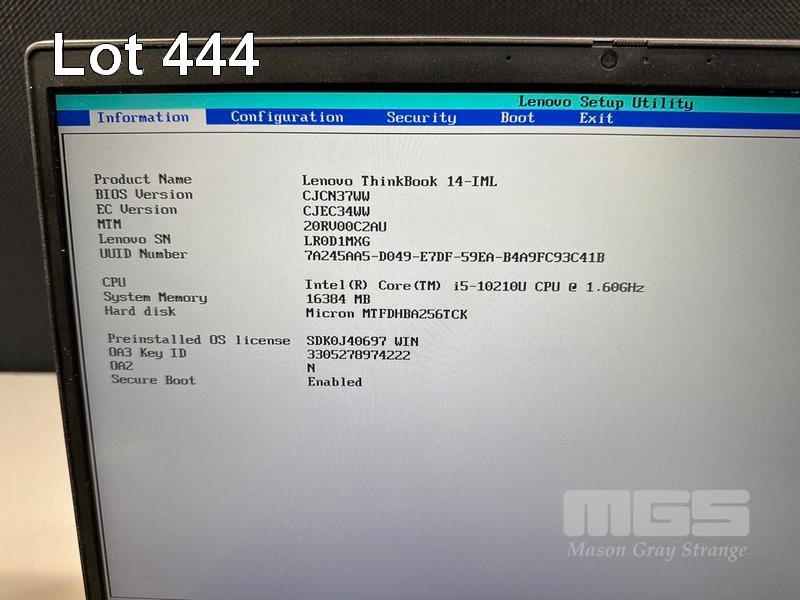 LAPTOP, LENOVO THINKBOOK 14-IML, TYPE 20RV, CORE i5 10210U (10TH GEN) @ 1.6GHz, 16GB RAM, 256GB NVMe M.2 SSD, 14" WIDESCREEN (1920x1080), INTEL UHD GRAPHICS, Wi-Fi, BLUETOOTH, WINDOWS 11 PRO INSTALLED & POWER SUPPLY (NOTE: MISSING RUBBER PAD ON BOTTOM OF LAPTOP, MINOR MARKS ON SCREEN) S/N:LR0D1MXG