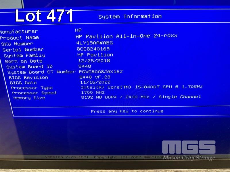 ALL-IN-ONE PC, HP PAVILION 24-r0xx, CORE i5 8400T (8TH GEN) @ 1.7GHz, 8GB DDR4 RAM, 1TB SATA HDD, DVD-RW, INBUILT 24" TOUCHSCREEN (1920x1080), 2GB AMD RADEON R7 M460 VIDEO, INTEL UHD GRAPHICS 630, Wi-Fi, WINDOWS 10 HOME INSTALLED & POWER SUPPLY (NO KEYBOARD, NO MOUSE) S/N:8CC8240169