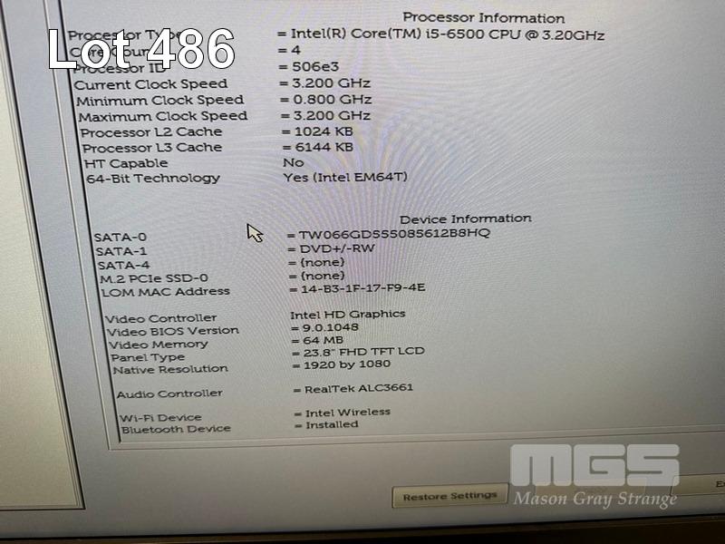 ALL-IN-ONE PC, DELL OPTIPLEX 7440, CORE i5 6500 (6TH GEN) @ 3.2GHz, 8GB DDR4 RAM, 256GB SSD, DVD-RW, INBUILT 23.8" FHD WIDESCREEN (1920x1080), INTEL HD VIDEO, WEBCAM, 8 x USB, Wi-Fi, BLUETOOTH, WINDOWS 10 HOME INSTALLED, KEYBOARD & MOUSE S/N:CZ73T92
