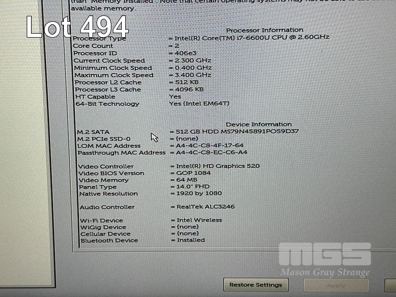 LAPTOP, DELL LATITUDE 7480, CORE i7 6600U (6TH GEN) @ 2.6GHz, 16GB DDR4 RAM, 512GB M.2 SSD, 14" WIDESCREEN (1920x1080), INTEL HD GRAPHICS 520, Wi-Fi, BLUETOOTH, WINDOWS 10 HOME INSTALLED & POWER SUPPLY S/N:31VCNH2