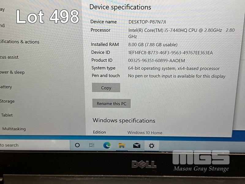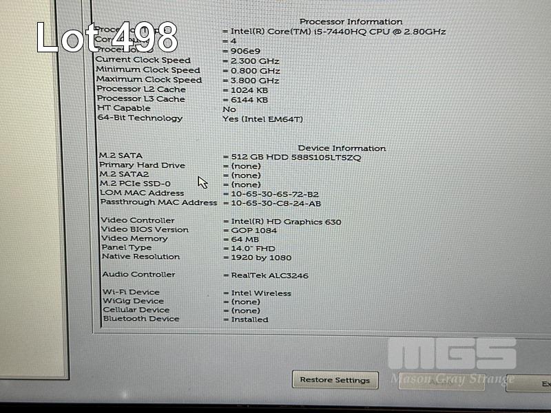 LAPTOP, DELL LATITUDE 5480, CORE i5 7440HQ (7TH GEN) @ 2.8GHz, 8GB DDR4 RAM, 512GB M.2 SSD, 14" WIDESCREEN (1920x1080), INTEL HD GRAPHICS 630, Wi-Fi, BLUETOOTH, WINDOWS 10 HOME INSTALLED (NO POWER SUPPLY) (NOTE: MARKS & SPOTS ON SCREEN) S/N:GSJM4Q2