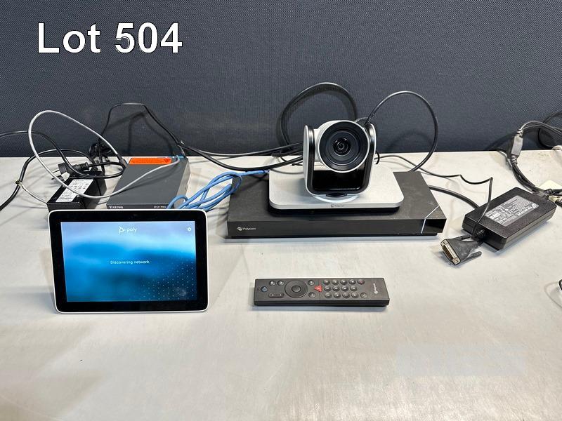 POLYCOM G7500 CONFERENCE UNIT (P/N 2201-85340-001) WITH POWER SUPPLY, POLYCOM EAGLEEYE CONFERENCE CAMERA (P/N 1624-66057-002) (NO POWER SUPPLY), POLYCOM POLY TC8 TOUCH CONTROLLER, REMOTE & EXTRON IPCP PRO 250 WITH POWER SUPPLY