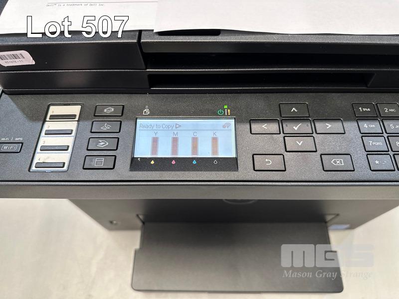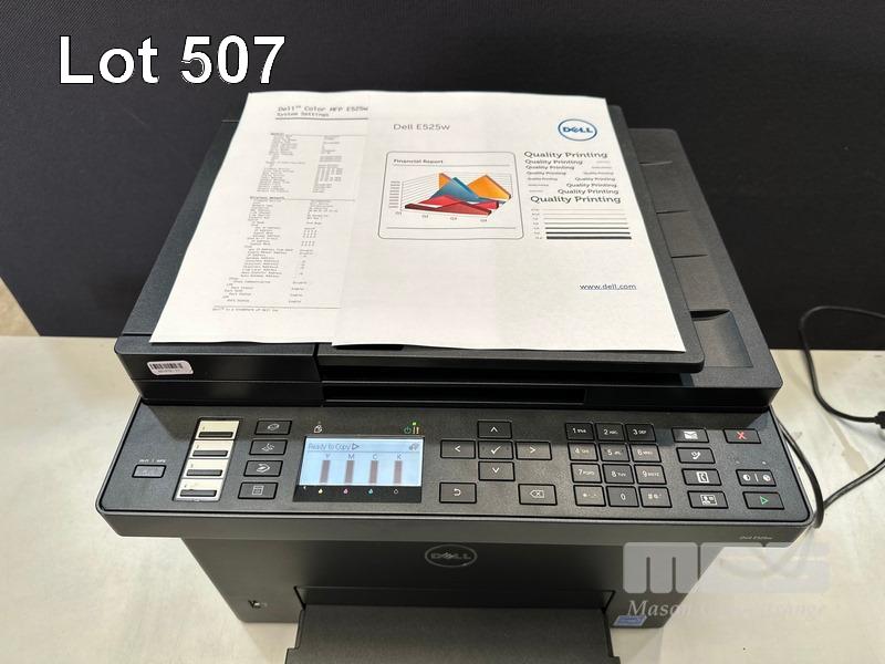 PRINTER, DELL E525w COLOUR MFC LASER, 7 COLOUR & 6 B&W PAGES SHOWING (TEST PAGE ATTACHED) S/N:JTZ8862