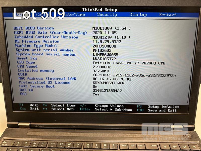 LAPTOP, LENOVO THINKPAD P51 MOBILE WORKSTATION, TYPE 20HJ, CORE i7 7820HQ (7TH GEN) @ 2.9GHz, 32GB DDR4 RAM, 512GB NVMe M.2 SSD, 15.6" WIDESCREEN (1920x1080), 4GB NVIDIA QUADRO M2200 VIDEO, Wi-Fi, BLUETOOTH, WINDOWS 10 PRO INSTALLED & POWER SUPPLY (NOTE: 1 x USB PORT DAMAGED) S/N:PF1826W3