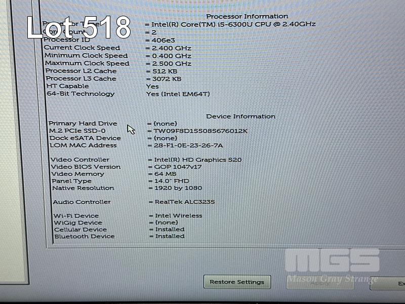 LAPTOP, DELL LATITUDE E7470, CORE i5 6300U (6TH GEN) @ 2.4GHz, 8GB DDR4 RAM, 256GB NVMe M.2 SSD, 14" WIDESCREEN (1920x1080), INTEL HD GRAPHICS 520, Wi-Fi, CELLULAR, BLUETOOTH, WINDOWS 10 PRO INSTALLED (NO POWER SUPPLY) S/N:GGXDLC2