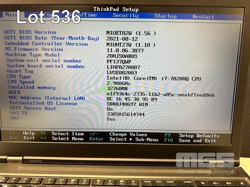 LAPTOP, LENOVO THINKPAD P51 MOBILE WORKSTATION, TYPE 20HJ, CORE i7 7820HQ (7TH GEN) @ 2.9GHz, 32GB DDR4 RAM, 512GB NVMe M.2 SSD, 15.6" WIDESCREEN (1920x1080), 4GB NVIDIA QUADRO M2200 VIDEO, Wi-Fi, BLUETOOTH, WINDOWS 10 PRO INSTALLED & POWER SUPPLY (NOTE: MINOR MARKS ON SCREEN) S/N:PF137QWP