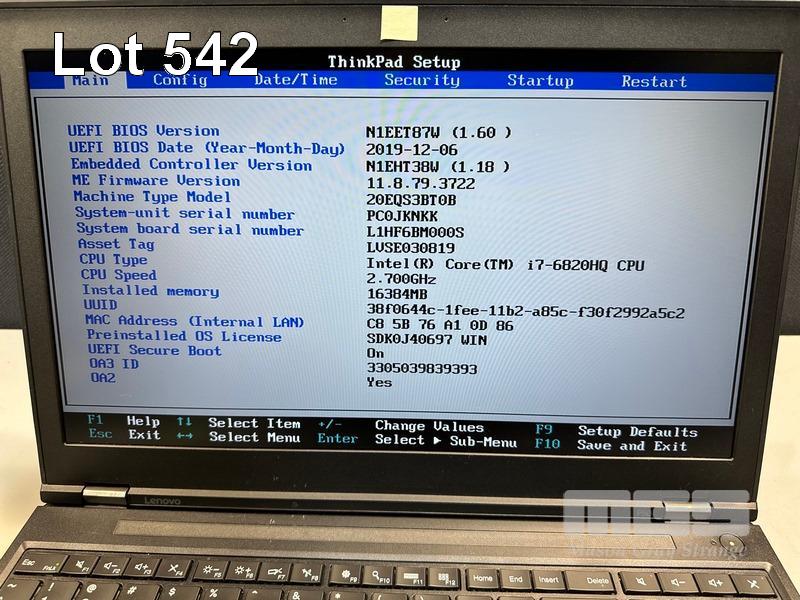 LAPTOP, LENOVO THINKPAD P50 MOBILE WORKSTATION, TYPE 20EQ, CORE i7 6820HQ (6TH GEN) @ 2.7GHz, 16GB DDR4 RAM, 256GB M.2 SSD, 15.6" WIDESCREEN (1920x1080), 4GB NVIDIA QUADRO M2000M VIDEO, Wi-Fi, BLUETOOTH, WINDOWS 10 PRO INSTALLED (NO POWER SUPPLY) S/N:PC0JKNKK