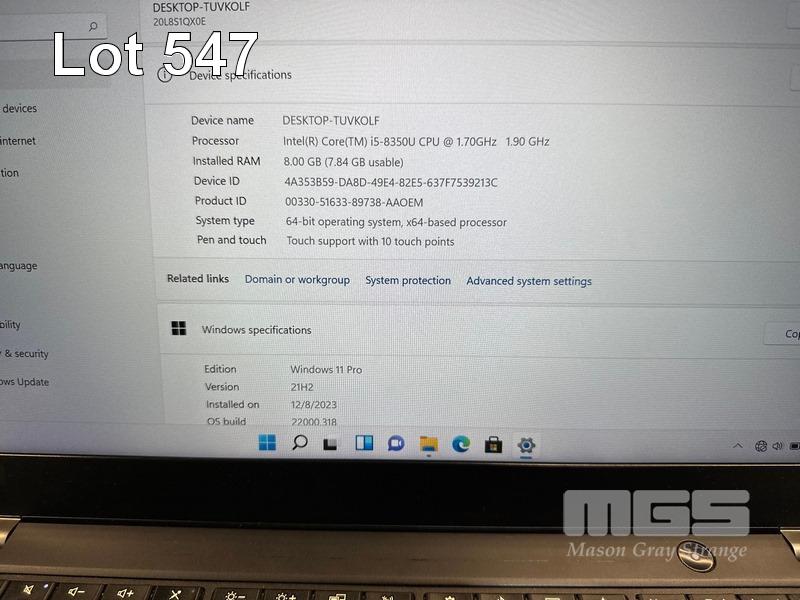 LAPTOP, LENOVO THINKPAD T480s, TYPE 20L8, CORE i5 8350U (8TH GEN) @ 1.7GHz, 8GB DDR4 RAM, 256GB NVMe M.2 SSD, 14" TOUCHSCREEN (1920x1080), INTEL HD VIDEO, Wi-Fi, BLUETOOTH, WINDOWS 11 PRO INSTALLED (NO USB-C POWER SUPPLY) (NOTE: MINOR MARKS ON SCREEN) S/N:PC0ZXK97