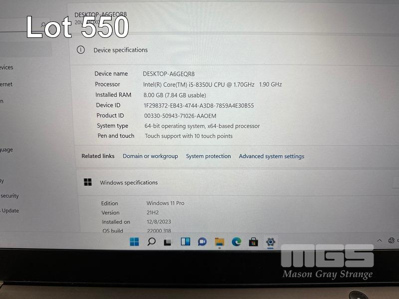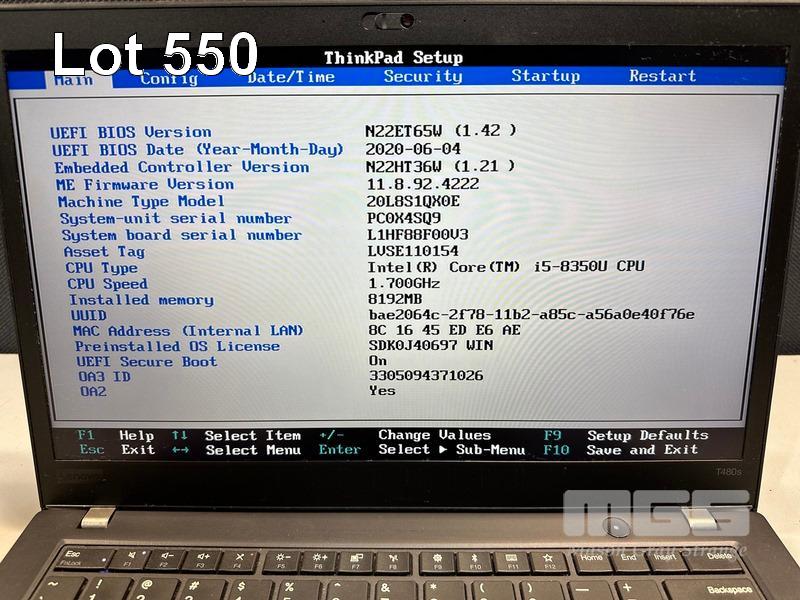 LAPTOP, LENOVO THINKPAD T480s, TYPE 20L8, CORE i5 8350U (8TH GEN) @ 1.7GHz, 8GB DDR4 RAM, 256GB NVMe M.2 SSD, 14" TOUCHSCREEN (1920x1080), INTEL HD VIDEO, Wi-Fi, BLUETOOTH, WINDOWS 11 PRO INSTALLED (NO USB-C POWER SUPPLY) (NOTE: MARKS ON SCREEN) S/N:PC0X4SQ9