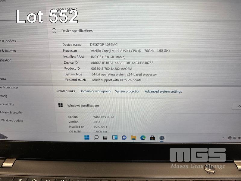 LAPTOP, LENOVO THINKPAD T480s, TYPE 20L8, CORE i5 8350U (8TH GEN) @ 1.7GHz, 16GB DDR4 RAM, 256GB NVMe M.2 SSD, 14" TOUCHSCREEN (1920x1080), INTEL HD VIDEO, Wi-Fi, BLUETOOTH, WINDOWS 11 PRO INSTALLED (NO USB-C POWER SUPPLY) (NOTE: DAMAGED SCREEN) S/N:PC120BC1