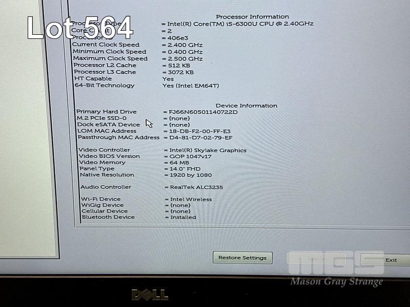 LAPTOP, DELL LATITUDE E7470, CORE i5 6300U (6TH GEN) @ 2.4GHz, 16GB DDR4 RAM, 256GB M.2 SSD, 14" WIDESCREEN (1920x1080), INTEL HD GRAPHICS 520, Wi-Fi, BLUETOOTH, WINDOWS 10 HOME INSTALLED, DOCKING STATION & POWER SUPPLY S/N:2HY2KC2