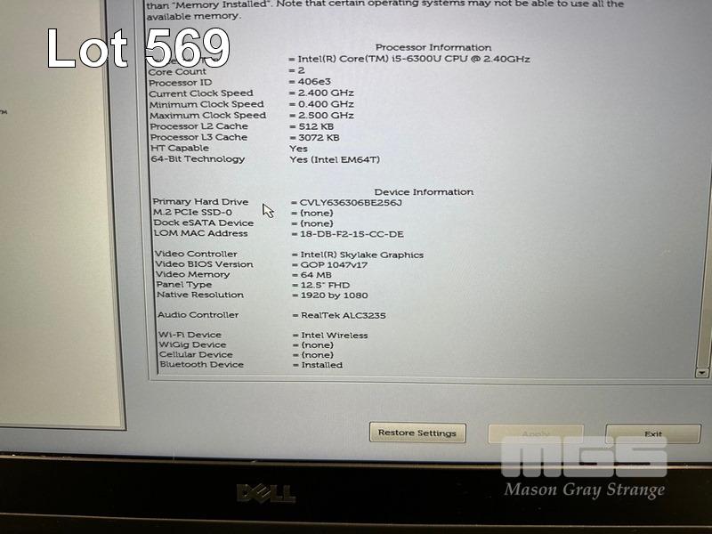 LAPTOP, DELL LATITUDE E7270, CORE i5 6300U (6TH GEN) @ 2.4GHz, 8GB DDR4 RAM, 256GB M.2 SSD, 12.5" WIDESCREEN (1920x1080), INTEL SKYLAKE GRAPHICS, Wi-Fi, BLUETOOTH, WINDOWS 10 HOME INSTALLED (NO POWER SUPPLY) (NOTE: BRIGHT SPOTS ON SCREEN) S/N:8590QC2
