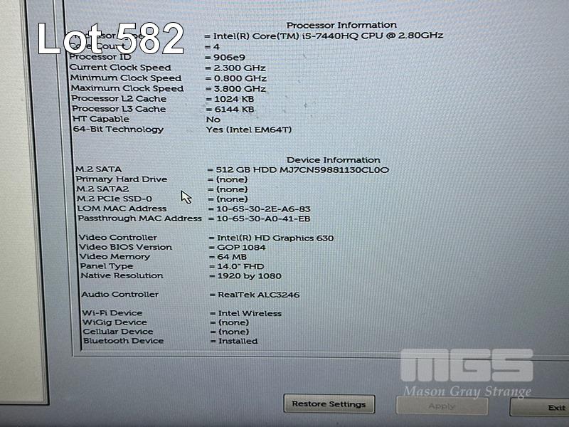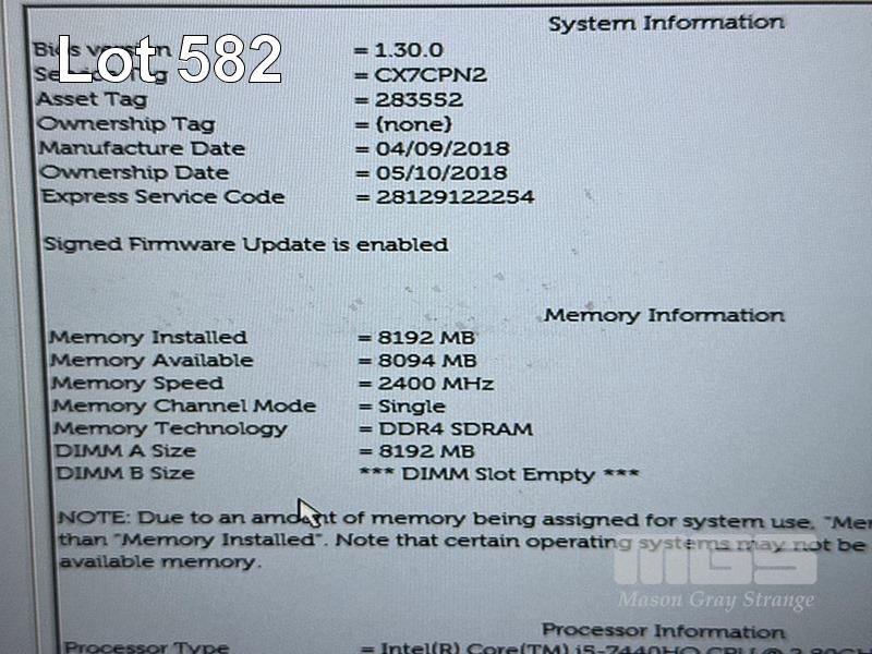 LAPTOP, DELL LATITUDE 5480, CORE i5 7440HQ (7TH GEN) @ 2.8GHz, 8GB DDR4 RAM, 512GB M.2 SSD, 14" WIDESCREEN (1920x1080), INTEL HD GRAPHICS 630, Wi-Fi, BLUETOOTH, WINDOWS 10 HOME INSTALLED (NO POWER SUPPLY) (NOTE: NO BATTERY, MARKS ON SCREEN, MINOR DAMAGE TO CASING) S/N:CX7CPN2