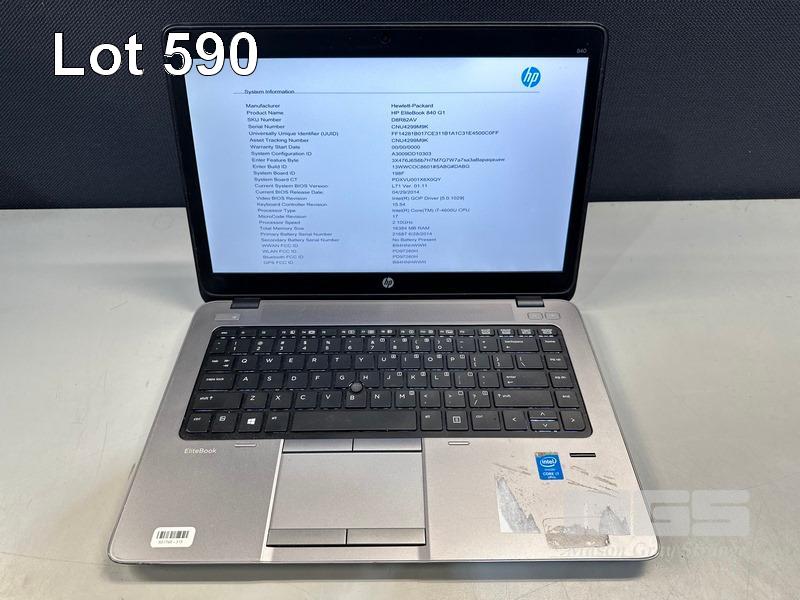 LAPTOP, HP ELITEBOOK 840 G1, CORE i7 4600U (4TH GEN) @ 2.1GHz, 16GB DDR3 RAM, NO HDD, 14" WIDESCREEN (NO POWER SUPPLY) (NOTE: BIOS PASSWORD PROTECTED, MINOR DAMAGE TO CASING) S/N:CNU4299M9K