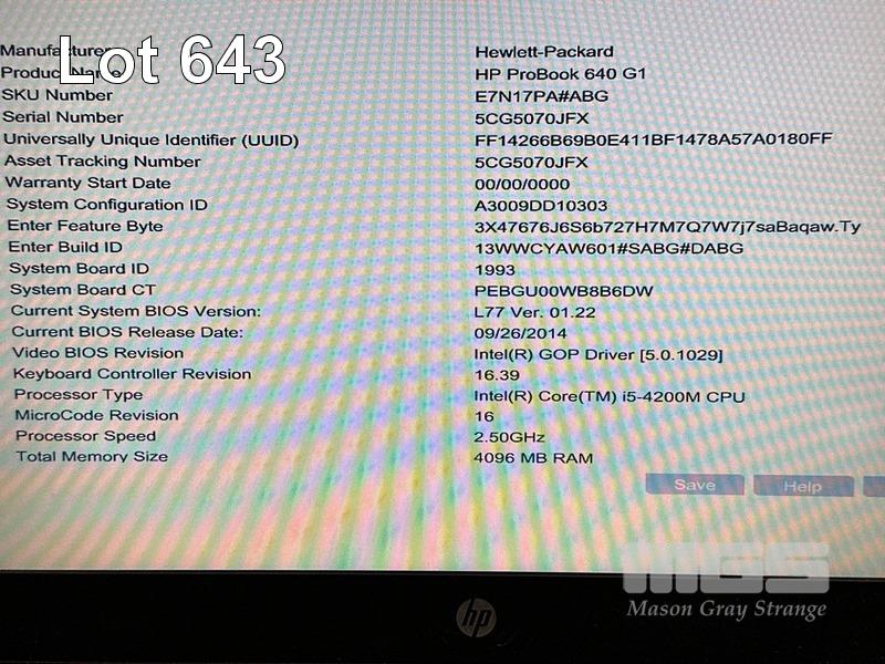 LAPTOP, HP PROBOOK 640 G1, CORE i5 4200M (4TH GEN) @ 2.5GHz, 4GB DDR3 RAM, 120GB SSD, DVD-RW, 14" WIDESCREEN (1366x768), INTEL HD VIDEO, Wi-Fi, BLUETOOTH, WINDOWS 10 PRO INSTALLED & POWER SUPPLY (NOTE: SCREEN BLEMISHES) S/N:5CG5070JFX